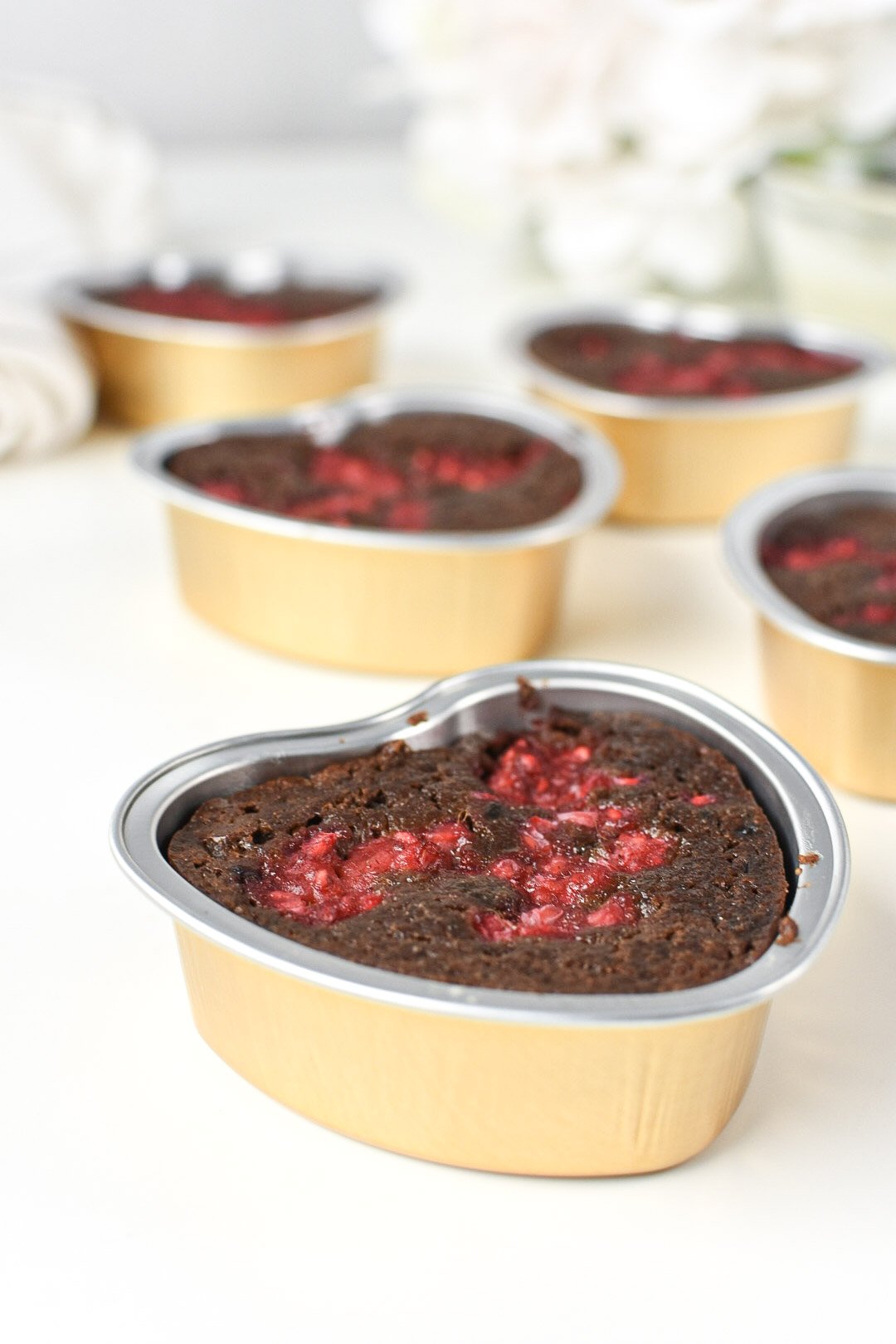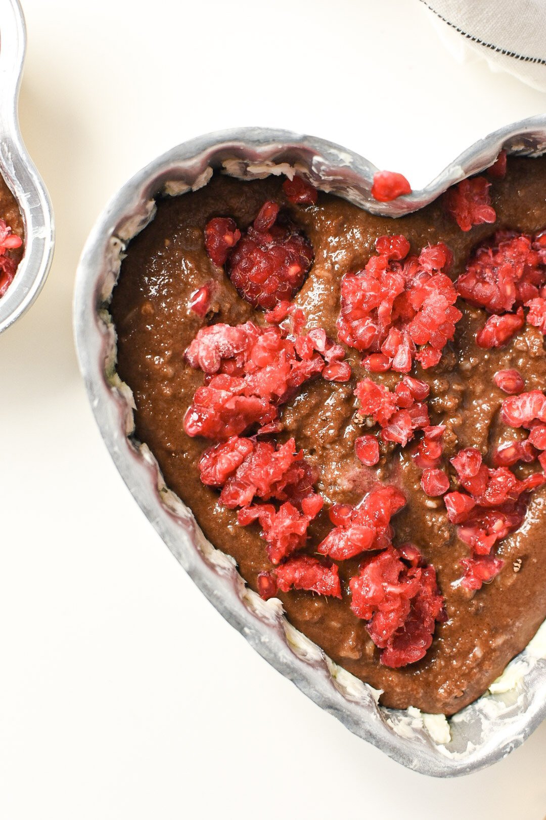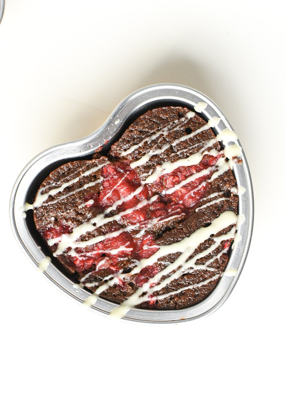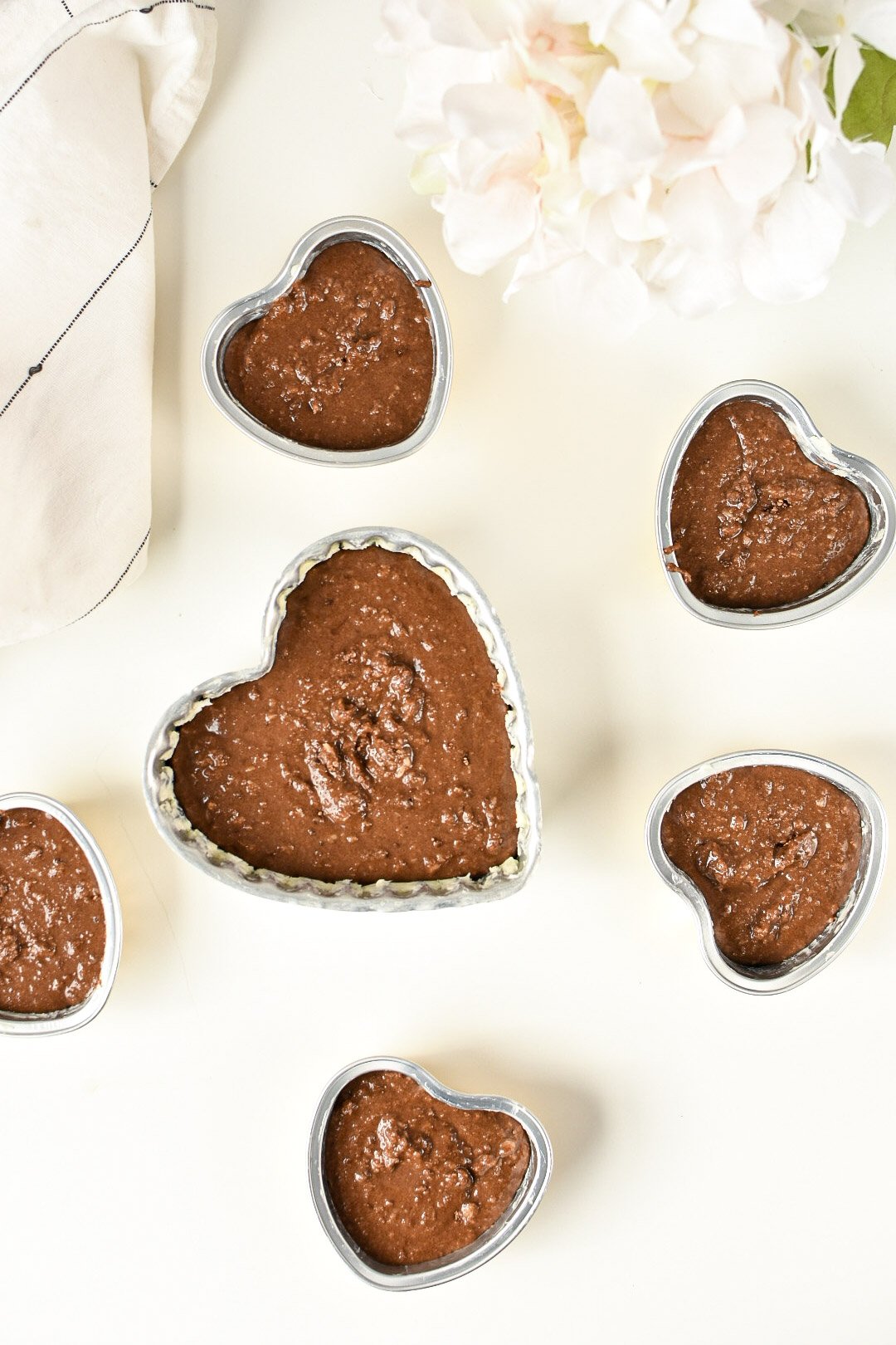1. Usé un molde en forma de corazón de 5 pulgadas y 5 moldes más pequeños con esta masa, pero puedes usar una bandeja para pastel completa. Cualquier tamaño de 8x8 a 9x12 funcionaría.
