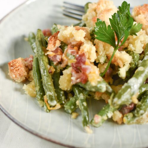 Me alegro de haberlo hecho porque, en mi opinión, es una de las mejores versiones de la clásica cazuela cremosa de alubias verdes, sin todos sus carbohidratos (¡y quitándole las cebollas!).