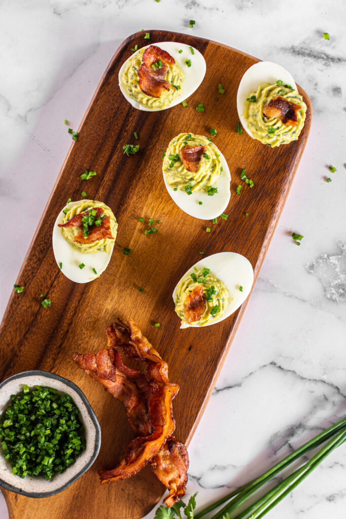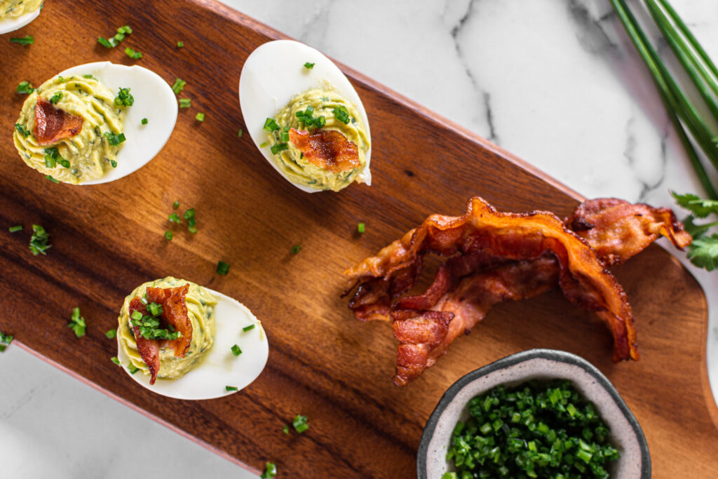 Estos huevos con tocino keto tienen una maravillosa frescura del limón, pero también son agradables por la cobertura de tocino. Disfruto de un brunch simple, y estos huevos rellenos son mi mejor opción para este brunch de Pascua.