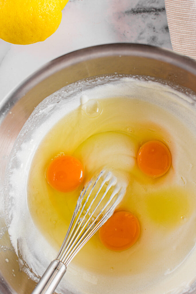 We’ll add sour cream to keep the almond flour lemon pound cake moist without making the cake mix very thin and liquidy.
