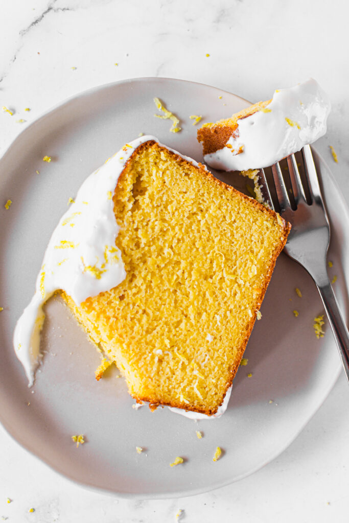 There’s something magical about the first mouthful of this fluffy pound cake. And if you get a little amount of lemon icing on your finger, it’s unavoidable not to lick it off.