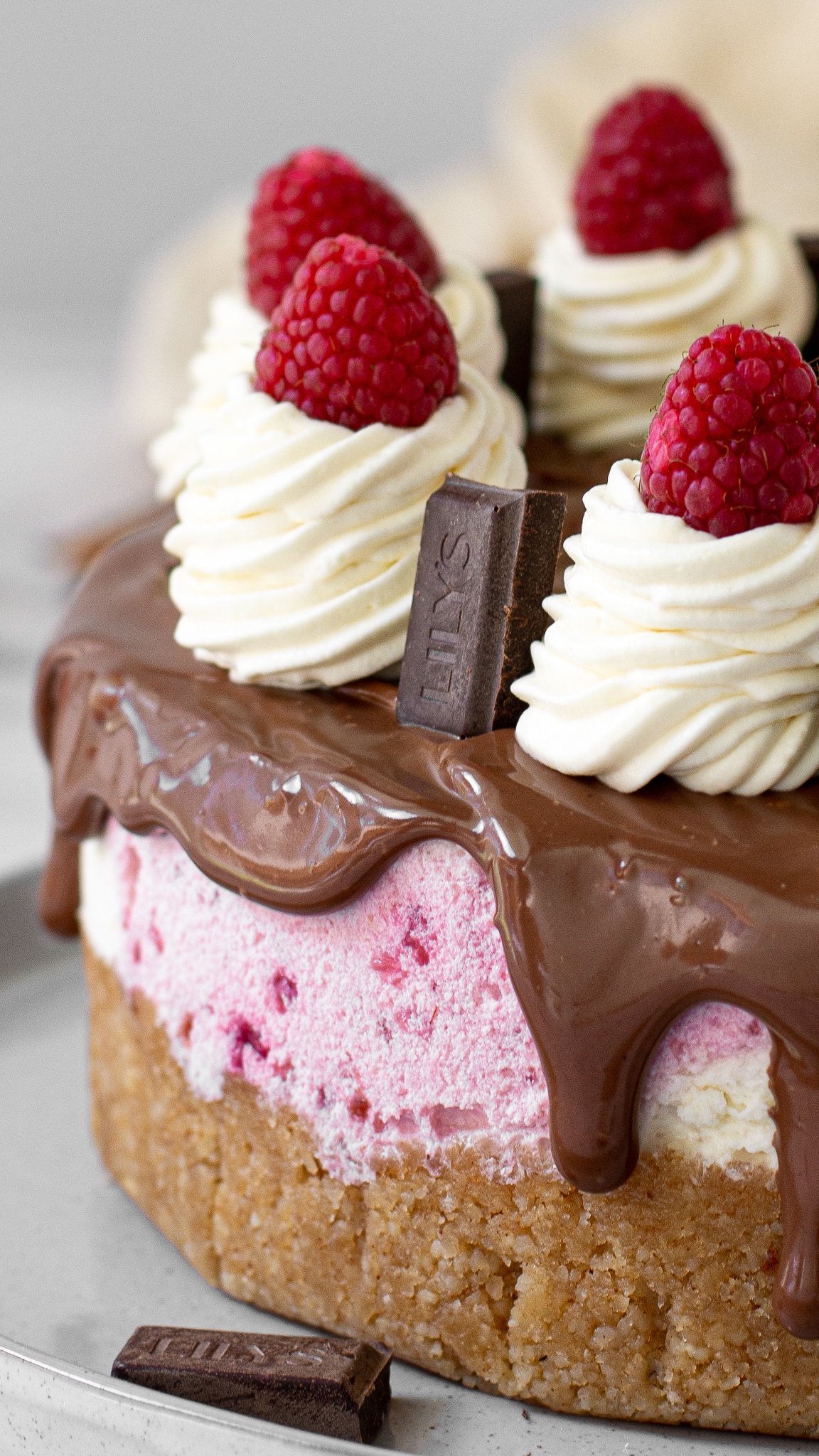 Keyword almond flour, cake, cheesecake, chocolate, no bake, raspberry
