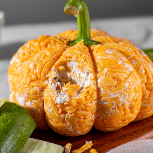 It’s that time of the year when pumpkins are everywhere, and they make for a super cute decoration so how about serving your guests a cute and delicious cheddar bacon pumpkin-shaped cheese ball?