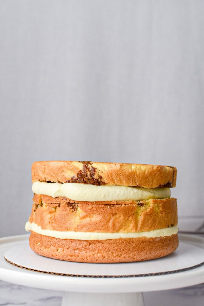 • Using a brush, lightly coat the cake layers with the espresso mix being careful not to get them too wet. If it’s too wet the cake won’t be stable.
