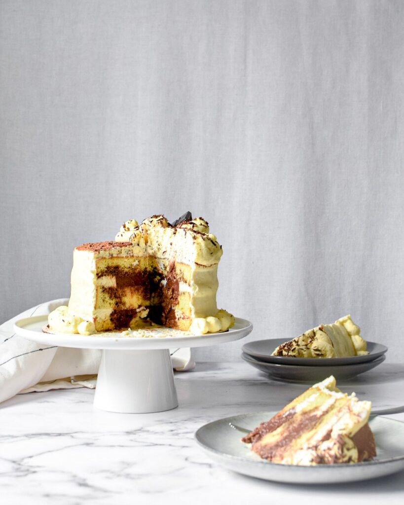 • Coat the cake with the rest of the mascarpone mixture. If it's too runny, place in the fridge for 15 minutes and then coat the cake.